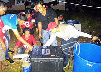 Singaporean firms Aquayana and HSL Constructor completed their donation, delivery, deployment and handover of five units of the Singapore-made Suitcase Saver portable water treatment systems yesterday at worst-hit Sanamxay district of Attapeu province.  The aid cargo was flown into Laos complimentary of Singapore's regional airline company, SilkAir.  The 3-man joint deployment also conducted training on the set up, function and maintenance of the water systems to the ground officials and technical staff from the National Disaster Management Organisation (NDMO) and Lao Red Cross at one of the five evacuation centres in Attapeu.  More than 6,000 locals are still staying across the five centres, with wet and stormy weather still persisting then.